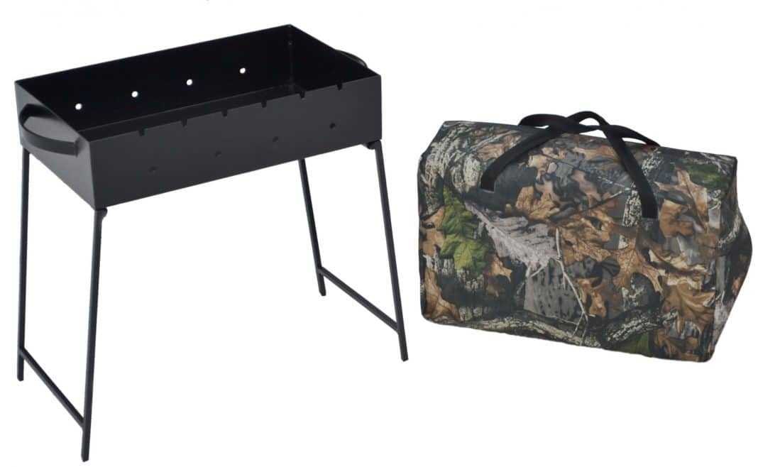Более сложный вариант — это своего рода чемоданчик с укрепленными стенками. Он защищает мангал от повреждений, если сверху него будут расположены какие-то тяжелые предметы. Обычно имеет большое количество отсеков, в которых размещается остальной инвентарь, необходимый для приготовления шашлыка.