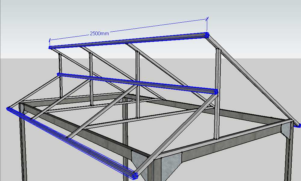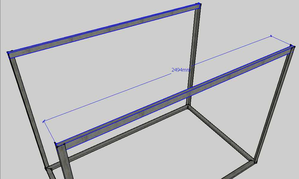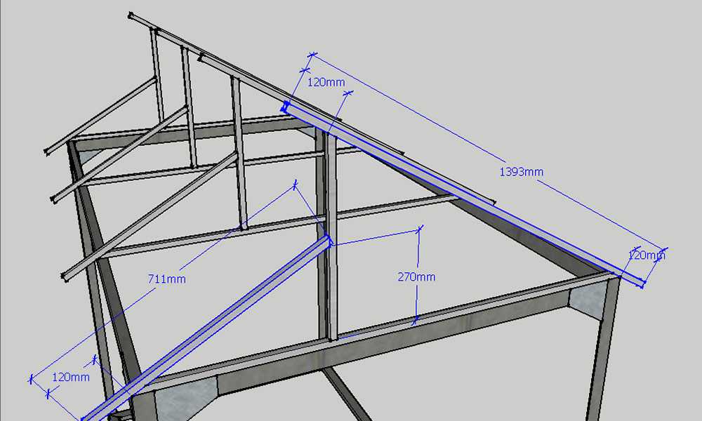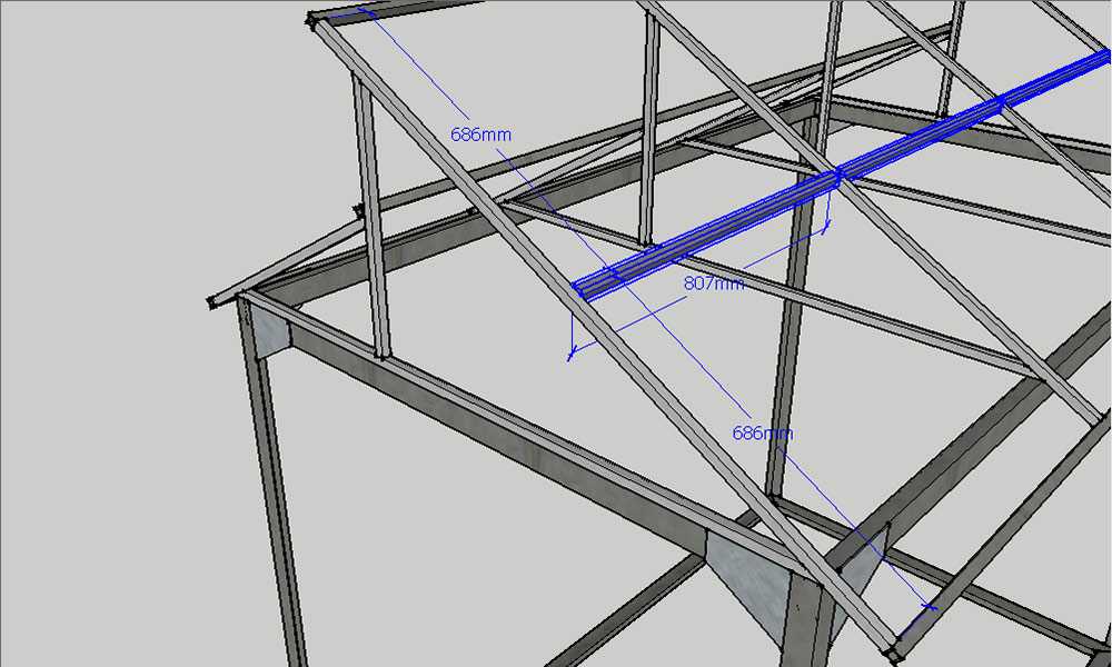 Теперь стропила. Вновь-таки, если бы был выбор, я бы использовал профиль 40×20мм, но применил то, что было под рукой, запаса прочности в результате, конечно, никакого, но ведь и не капитальное строительство затеял. Навес – не дом.