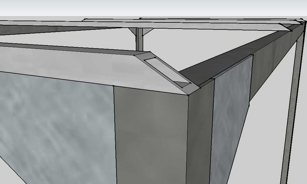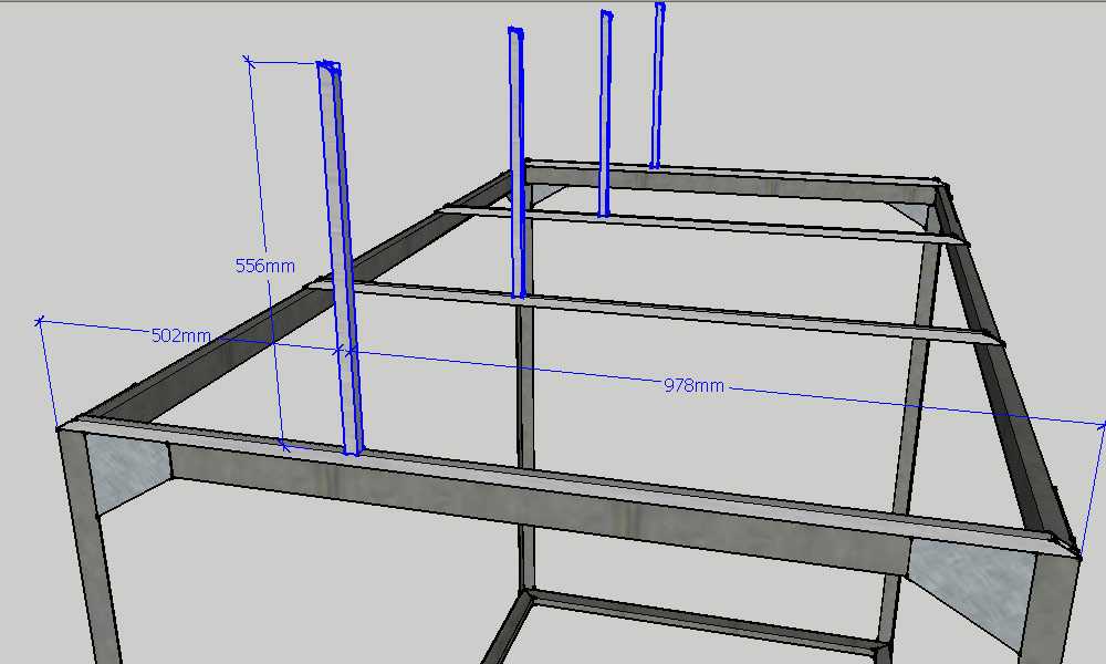 Вот только эта конструкция получилась слишком подвижная. По-хорошему ее следовало бы укрепить раскосыми, но это было бы не идейно, а потому для дополнительной жёсткости пришлось варить на всех углах металлические пластины.