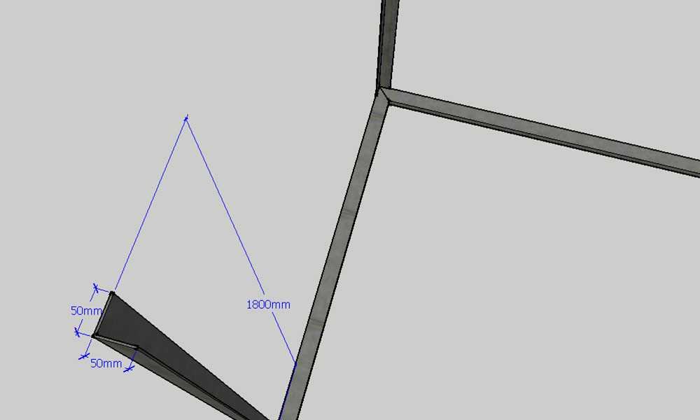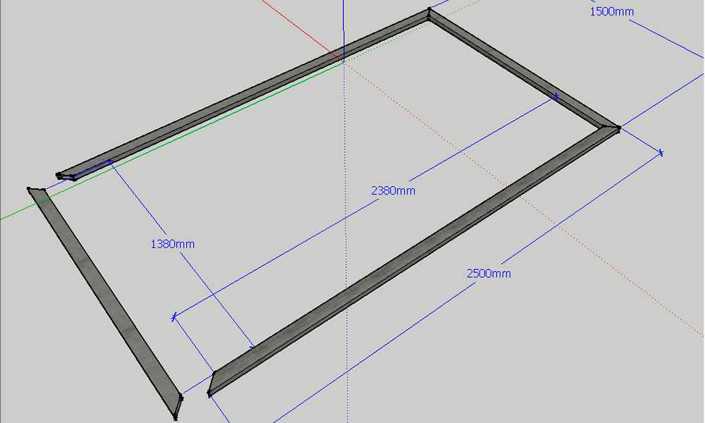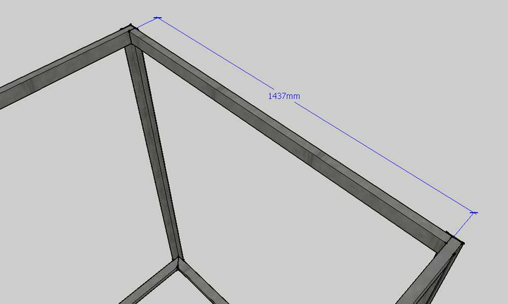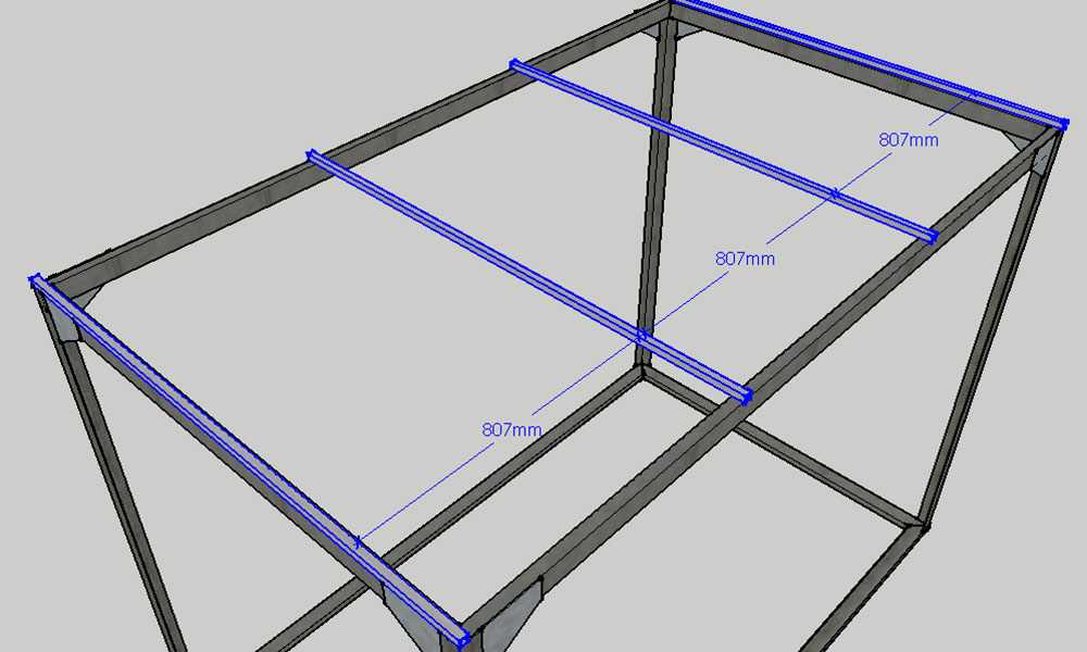 После изготовления обвязки я вырезал четыре полтора метровых профиля сечением 20×20мм и, запилив торцы под 30°, использовал их в качестве лаг.