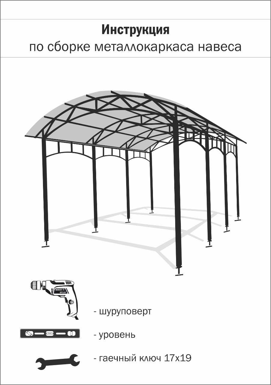 Дальнейшая стройка навеса происходит по той же инструкции, что и в случае с металлическим каркасом.