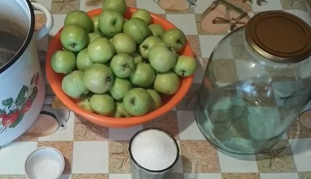 Яблоки твёрдых кисло-сладких сортов режутся на 4 части, из них удаляются семечки с жёсткими пластинами сердцевины. 3-х литровая банка, предварительно стерилизованная, заполняется резаными плодами до половины.