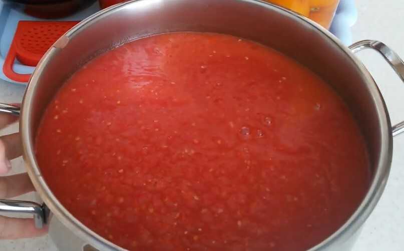 - Готовят пасту из томатов блендере. Или же измельчают с помощью сита.