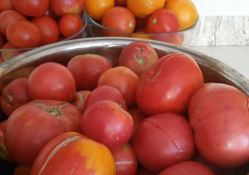 Сразу отложите томаты, которые пойдут на перетирку (это может быть любая некондиция) и помидоры для консервации. Начинаем!