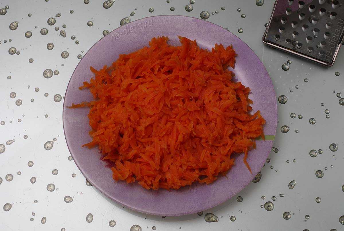 Следующий слой — тертая морковь, с майонезом. Поверх моркови уложите натертые яйца, они придадут особую воздушность салату.