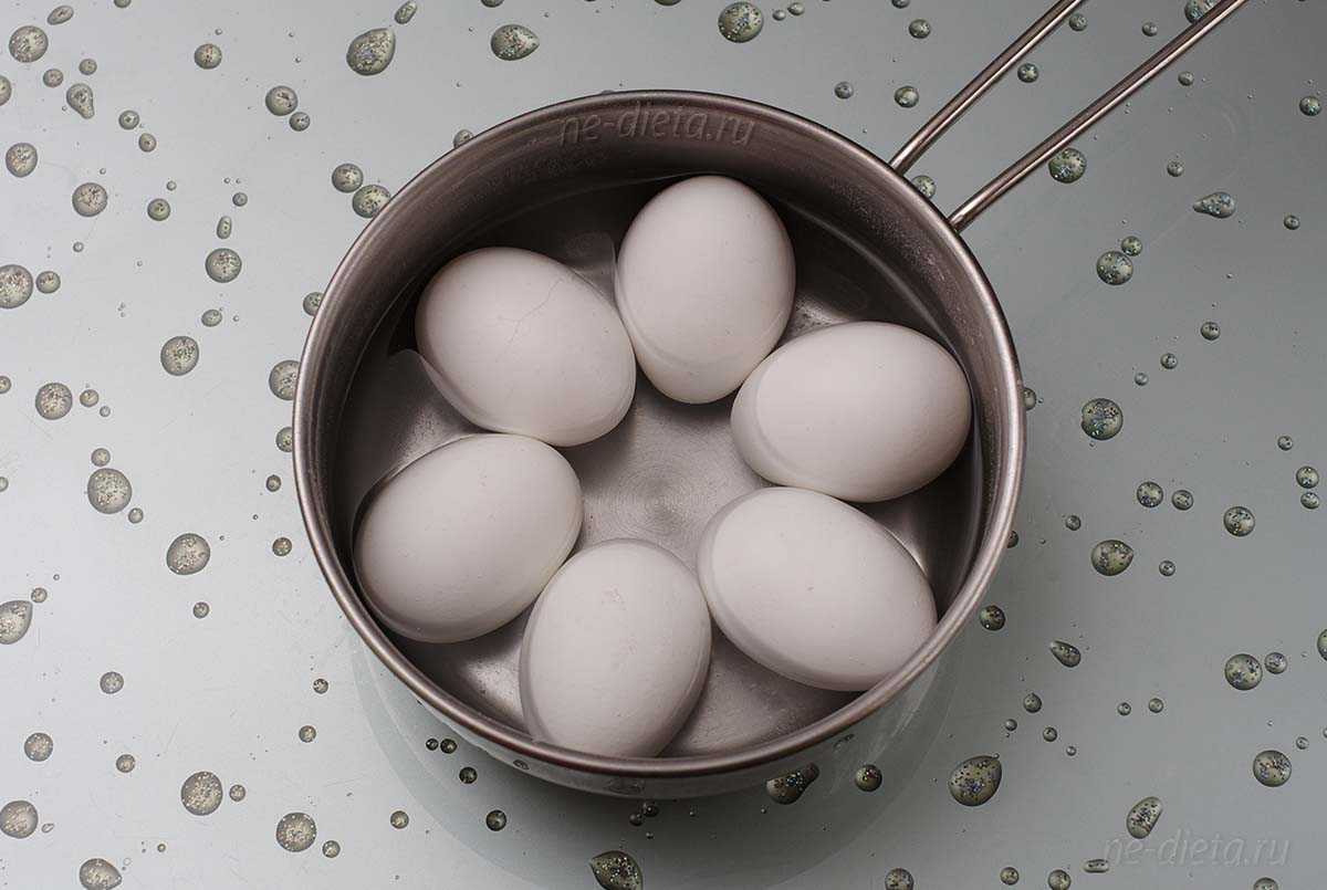 3. Яйца сварены вкрутую и охлаждаются в холодной воде, так проще очистить. Теперь надо их натереть на крупной тёрке. Трём целиком.