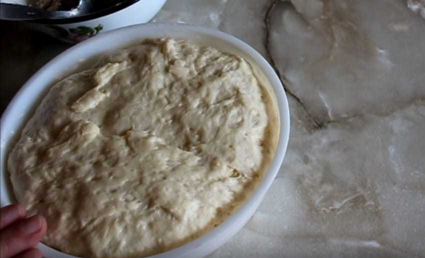 - Тесто оставляется в тепле на 60-70 минут. Его нельзя перемешивать после подъема.