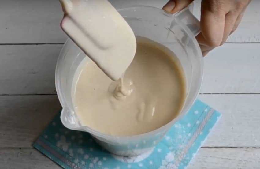 - В третью посуду добавляется молоко и растительное масло, а также соль, оставшийся песок и вода.