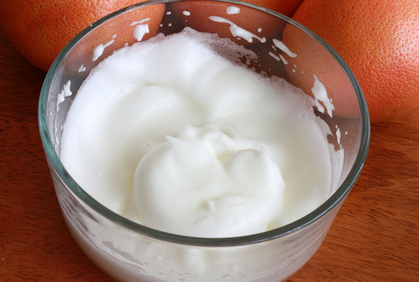 Для этого нам нужно будет взбить куриные яйца с сахарной пудрой. И не просто взбить, а превратить их в пышную стойкую пену.