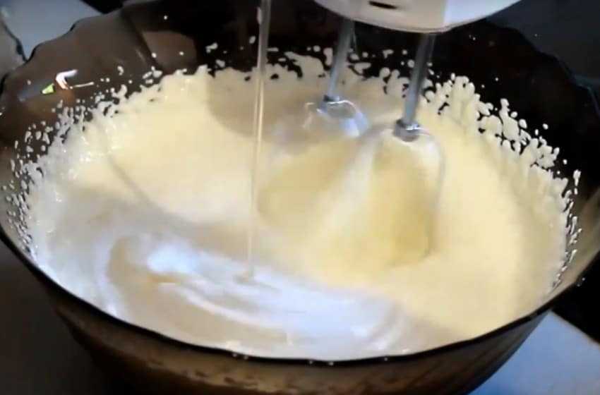 - Сливки взобьем миксером до густого состояния, начиная с малых оборотов и затем увеличив до максимума.