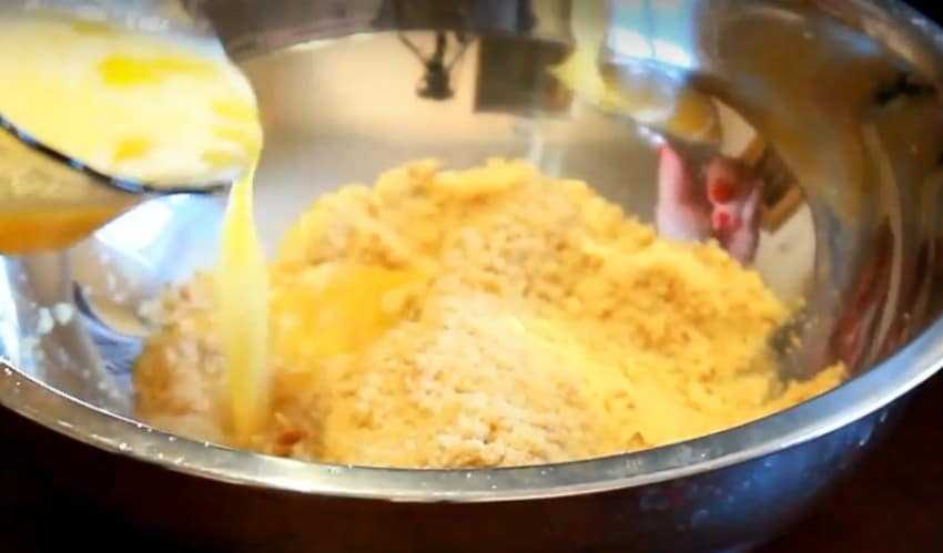 1. Мелко раскрошите печенье, лучше воспользоваться блендером. Добавьте в крошку растопленное сливочное масло и перемешайте. Если хотите получить темную основу, возьмите печенье «Орео».