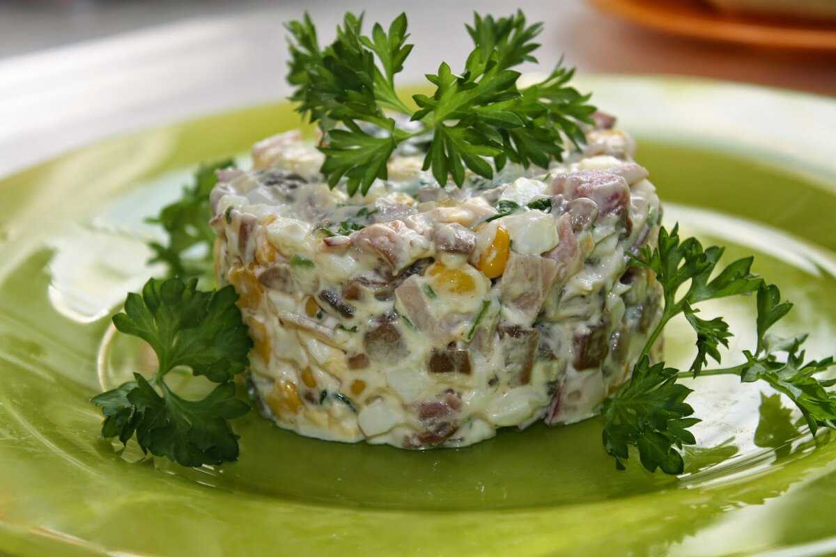 Оливье с говяжьим языком — очень вкусный салат на праздничный стол
