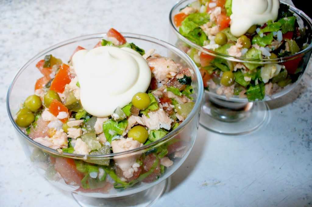 Салат с отварной рыбой, красной или белой, — это еще и диетическое блюдо, богатое белком, но легко усваивающееся. Рыба, в отличие от мяса или птицы переваривается быстрее в два раза, не оставляет чувства тяжести.