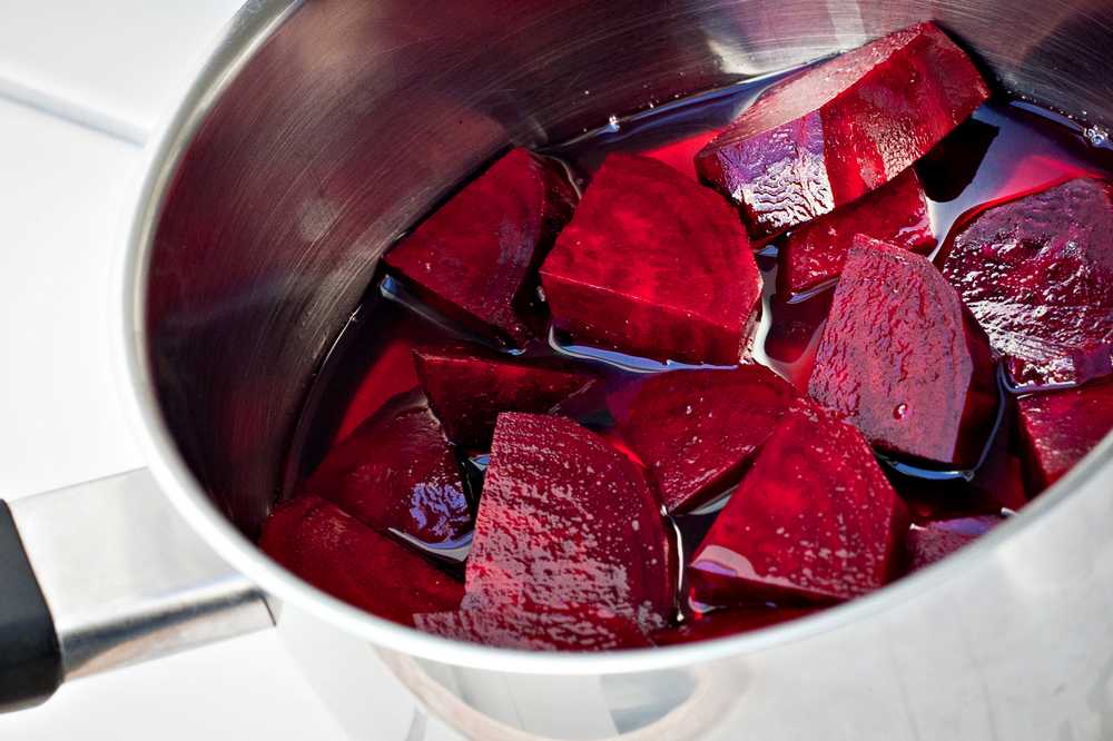 1. Свеклу хорошо промываем, перекладываем в кастрюлю, заливаем горячей водой, отправляем на огонь и доводим до кипения. Далее уменьшаем огонь и варим корнеплоды в течение 1-1,5 часов. Можно также свеклу запечь. Для этого смазываем её небольшим количеством растительного масла, заворачиваем в фольгу и запекаем при 200оС 1 час.
