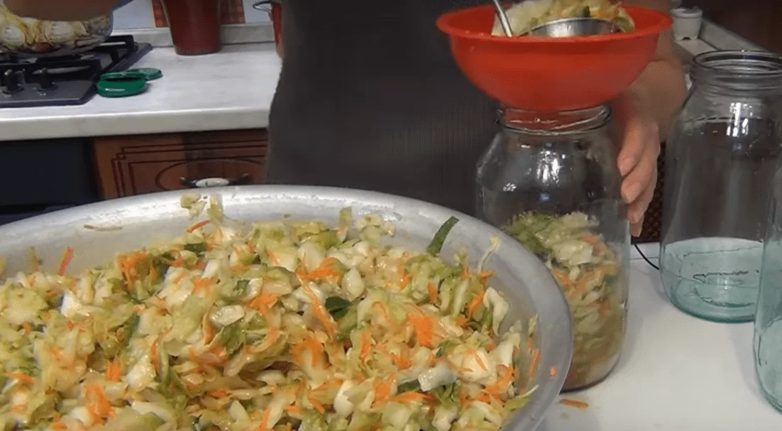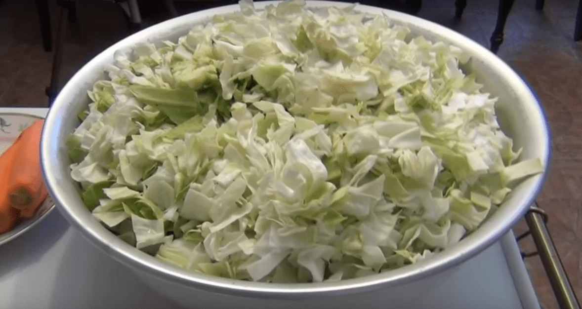 - Подготовить вилок капусты, нашинковать, посолить и перетереть вручную, чтобы овощ стал мягче и пустил сок.