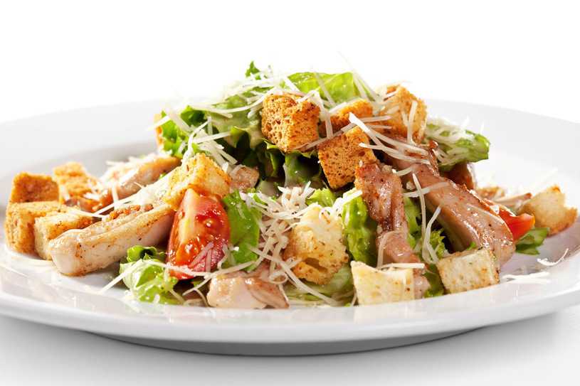 Салат цезарь с сухариками и индейкой