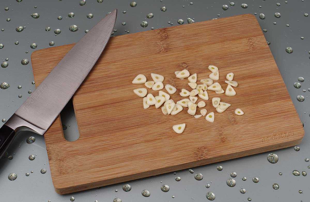 9. Чеснок очистить и нарезать тонкими пластинками.