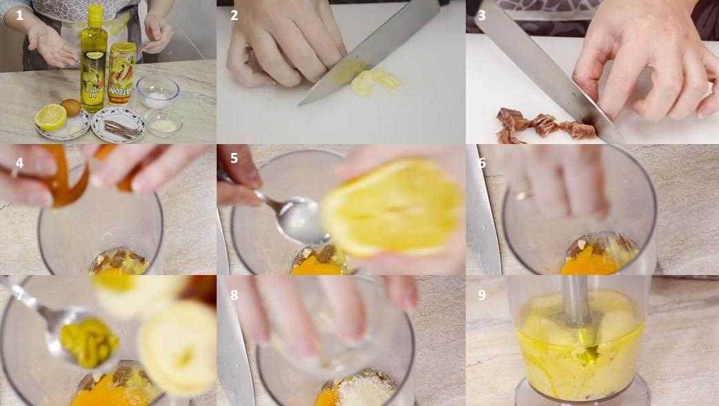 - взбивать компоненты нужно тщательно – с помощью миксера или блендера, потому как от качества взбивания зависит внешний вид заправки и ее вкус;