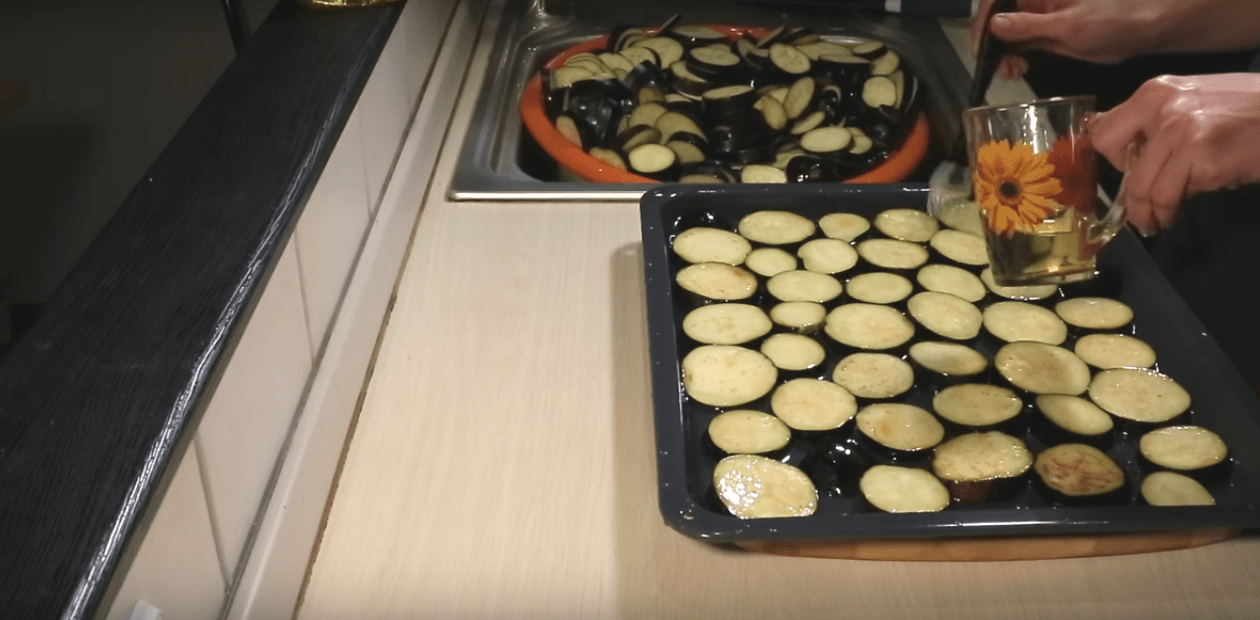 Баклажан, как губка впитывает в себя масло. Чтобы блюдо не получилось слишком жирным, овощи предварительно замачивают в подсоленной воде. Это также поможет убрать горечь, которая порой бывает в баклажанах.