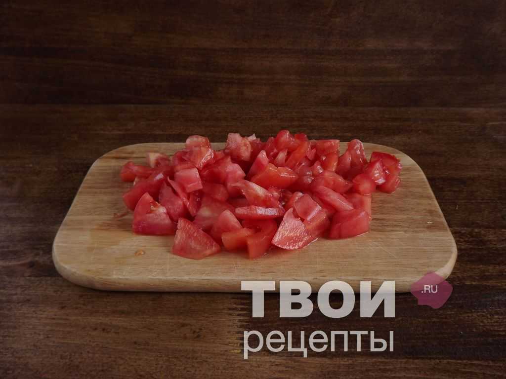 Этим временем помидоры очищаем от кожицы, затем произвольно рубим.