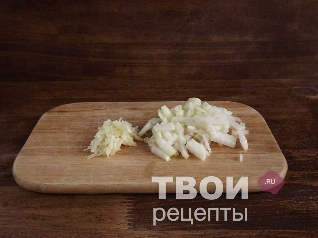 Добавляем к луку и чесноку, закрываем крышкой и тушим 15 минут.