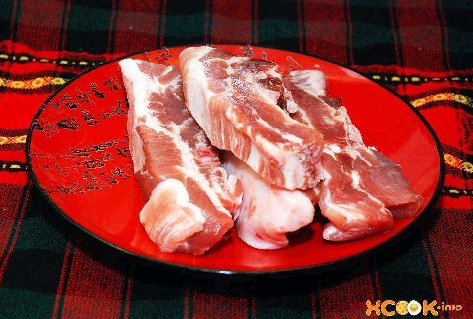 Подберите для приготовления этого блюда свежие свиные ребра, промойте их в холодной воде, высушите и нарежьте любым удобным для вас способом или так, как показано на фото ниже.