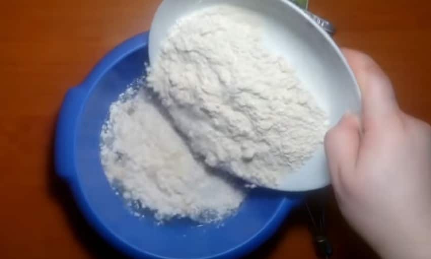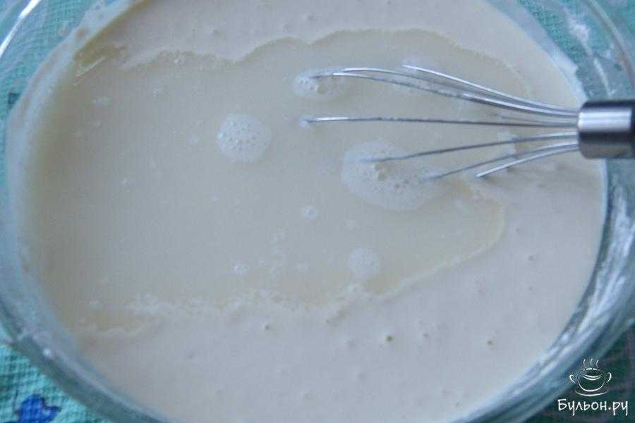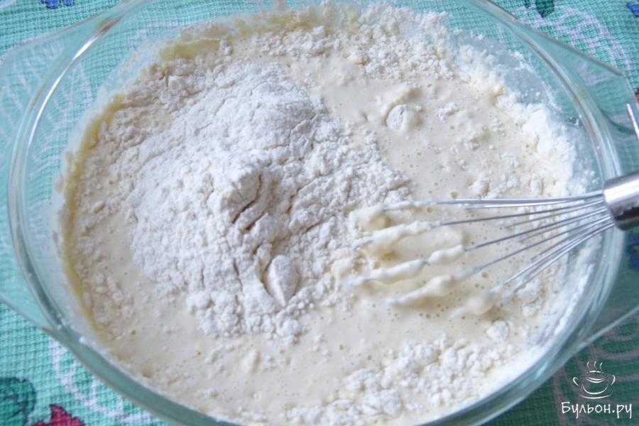 2. Муку сначала просейте, а затем постепенно добавляйте в жидкость. Тщательно перемешивайте тесто, чтобы консистенция получилась однородной.