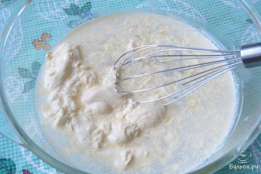 Шаг 2. Добавить майонез и взбить более сильно до получения однородной массы, в процессе досыпая соль, перец и другие приправы.