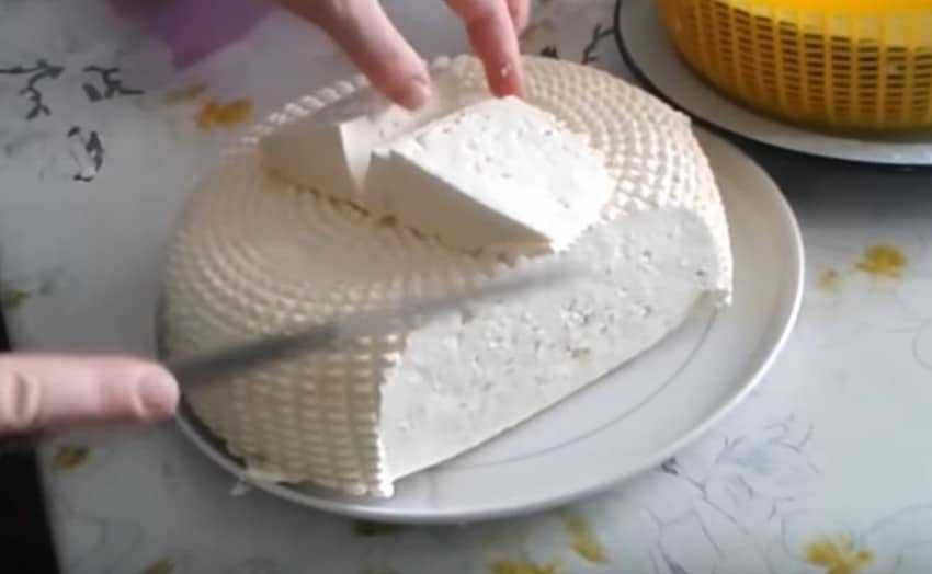Теперь можно пробовать готовый продукт — он получается нежный и достаточно мягкий. А можно оставить сыр ещё постекать под прессом или без него, если вы любите потвёрже.