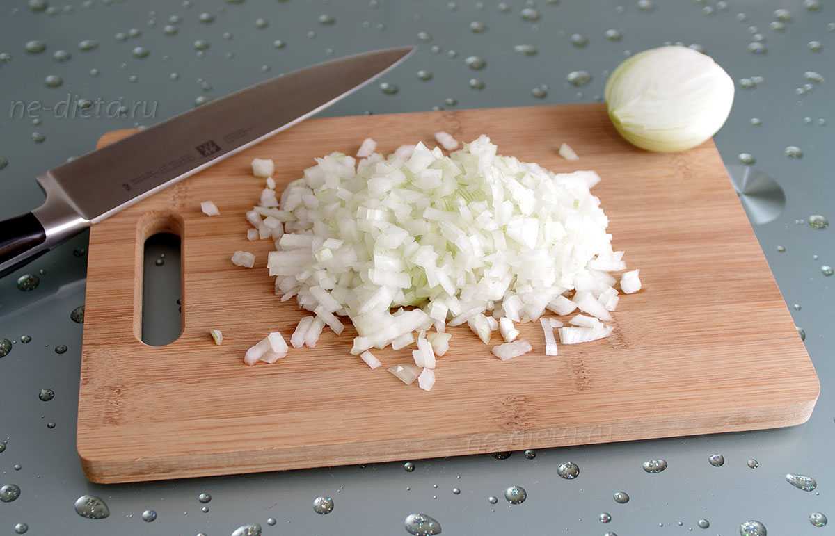 1. Подготавливаем лук. Очищаем его, нарезаем мелкими кубиками.