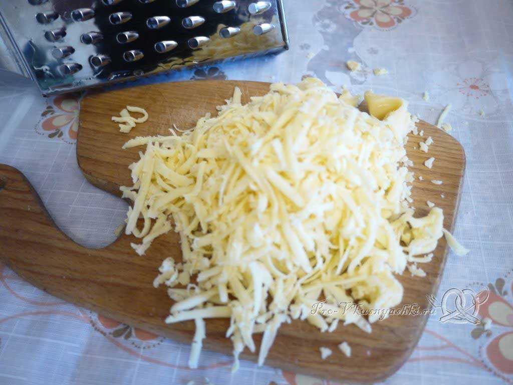 - Твердый сыр натираем на крупной терке.