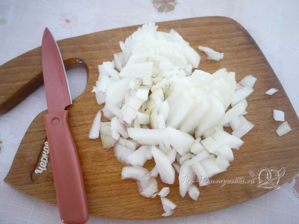 Лук нарезаем мелким кубиком.
