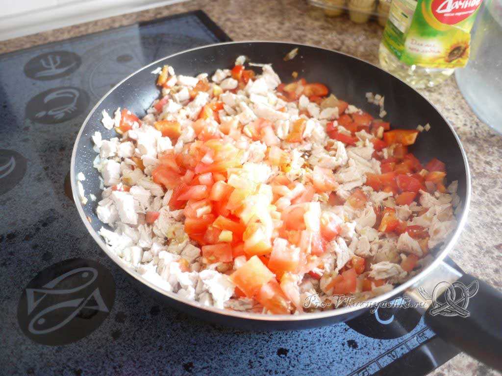 Помидор также нарезаем мелким кубиком.