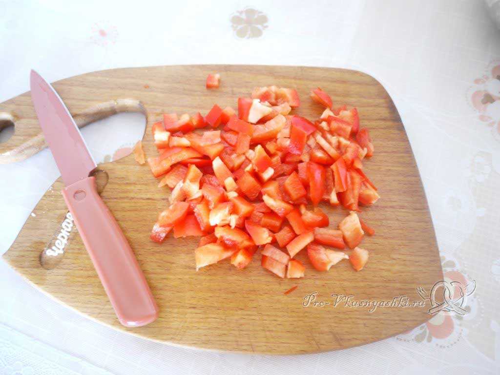 Сладкий красный перец измельчаем (чем меньше кусочки, тем лучше).