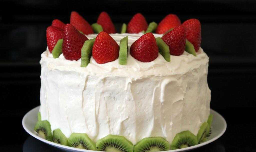 Допускается участие кожуры в украшении верха торта. Так, она может служить подножием чашечки цветка или листьями. Но если торт делается для детей, твердую кожуру лучше снять совсем. Малыши очень любят необычные оттенки в блюдах. Поэтому зеленое киви будет очень кстати. Фруктом можно украсить «крону пальмы». Подойдет китайский крыжовник и для создания зеленых зверушек — крокодила, лягушки.