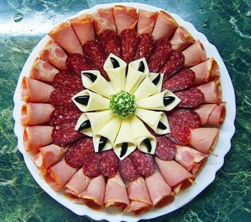 - колбаса, мясные деликатесы и т.д. примерно 50-60 грамм на человека