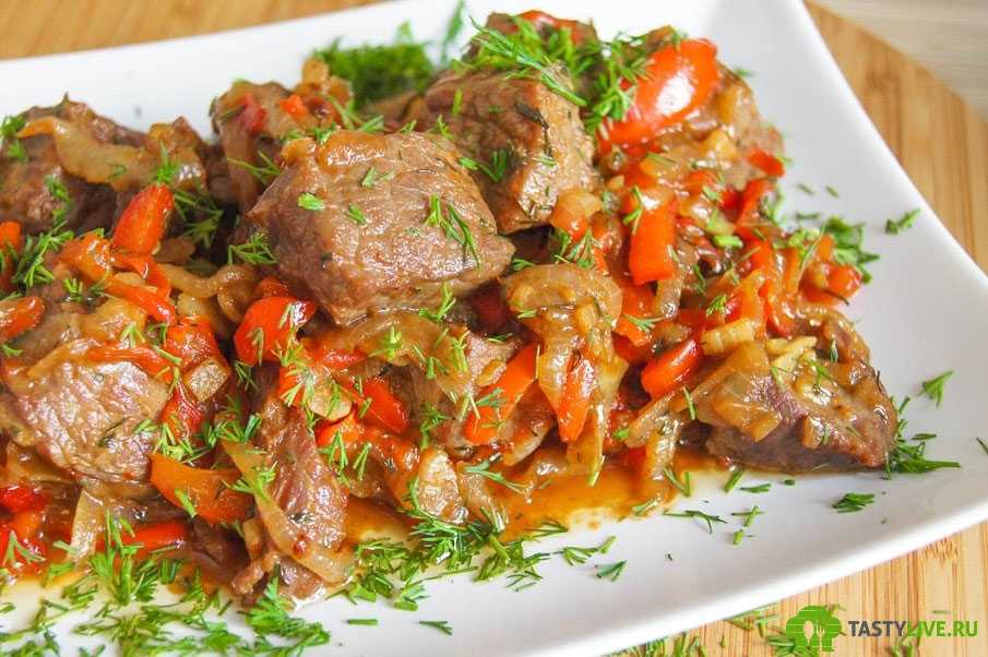 Рецепт гуляша с подливкой из говядины с фасолью на сковороде