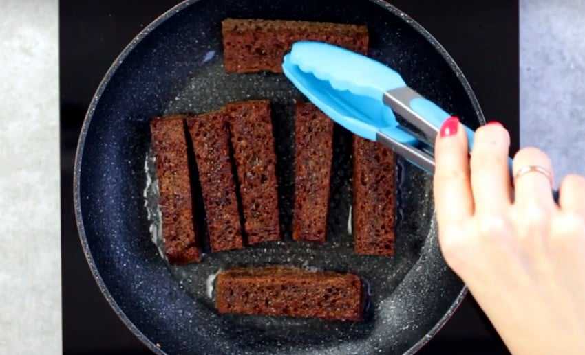 Гренки из черного хлеба с чесноком на сковороде как в баре