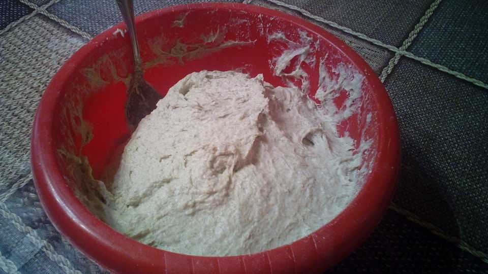 Пропорция замеса — 1:9 (закваска взятая из холодильника : вода/мука)