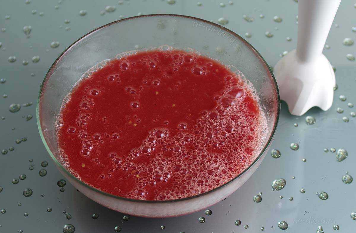 7. Снять кожуру с помидоров, нарезать их ломтиками и измельчить блендером.