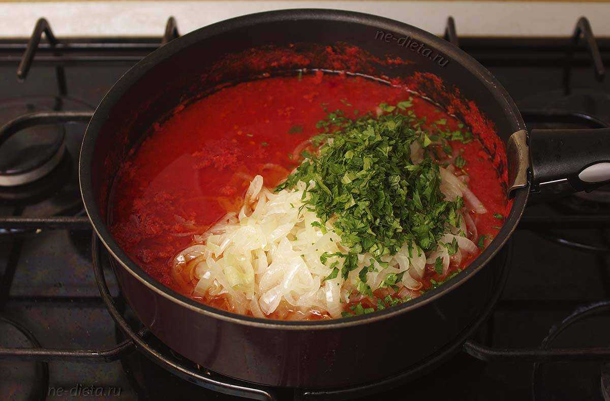 Если надо — можно добавить немного воды, или (так делает одна знакомая) хорошего томатного сока. Тушить все под крышкой 15 минут. Получится томатная начинка для фаршировки блюда. Начинка должна быть достаточно густая — как домашняя сметана.