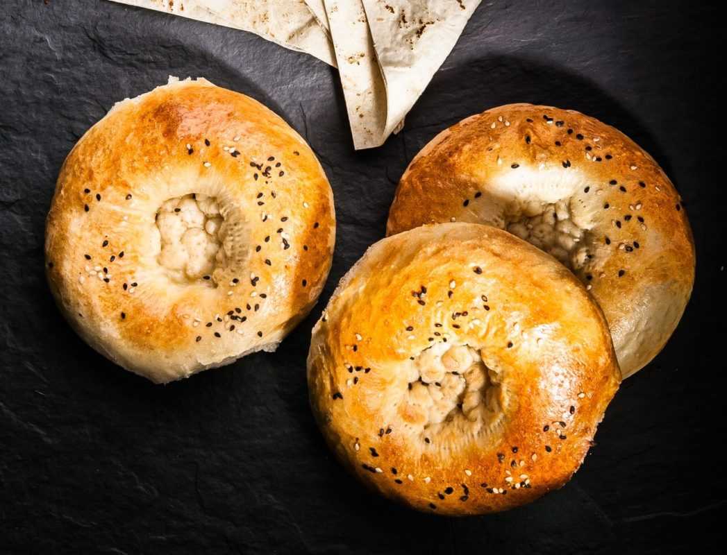 Когда заготовки для будущих лепешек вновь подойдут, нужно раскатать их в круги, толщиной примерно 3 см. ПО всему периметра сделать неглубокие надрезы, сверху лепешку смажьте яйцом и посыпьте кунжутным семенем.