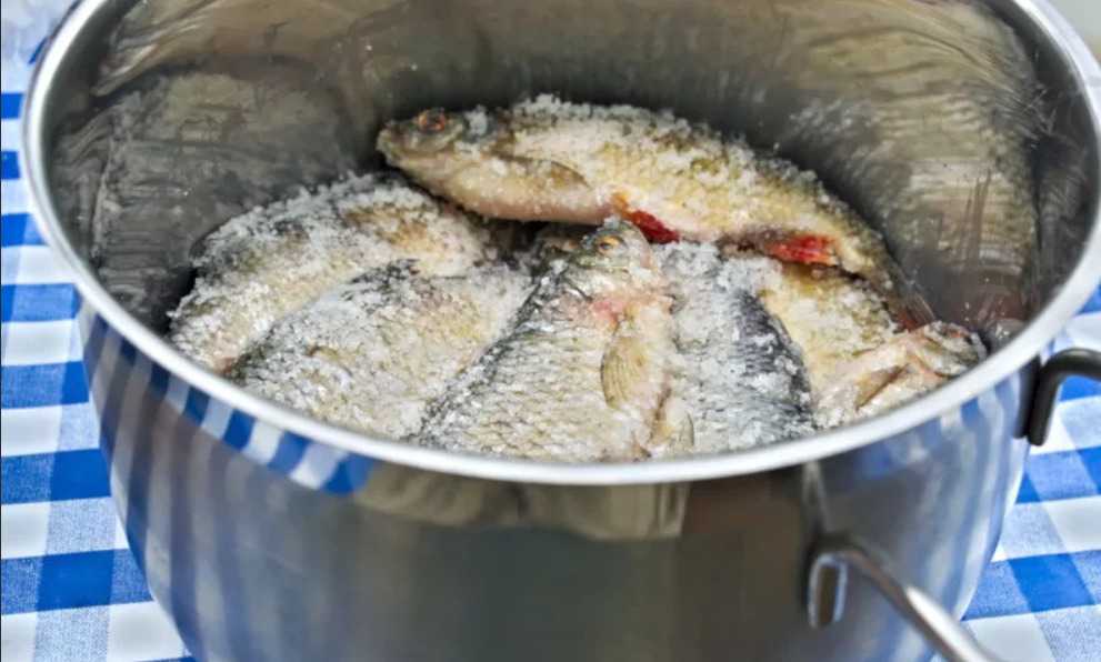 - В этот момент в воду добавляется соль. На 1 литр воды требуется 50 г соли. Это не столь высокая концентрация, как может показаться на первый взгляд. Низкая плотность рассола компенсируется длительным вымачиванием. Мясо в маринаде пролежит 5-7 суток.