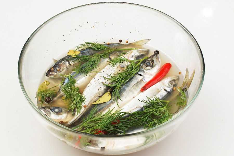 Можно использовать соляной раствор, особенно при холодной обработке. Он может быть как чистым, так и ароматизированным – с добавлением специй. Отличное сочетание: на 1 л воды берут 30 г горчицы, сок 1 лимона, 2 луковицы, соль, лавровый лист, зеленый лук и молотый перец по вкусу. Засолка длится от 2 часов для мелких рыбешек.