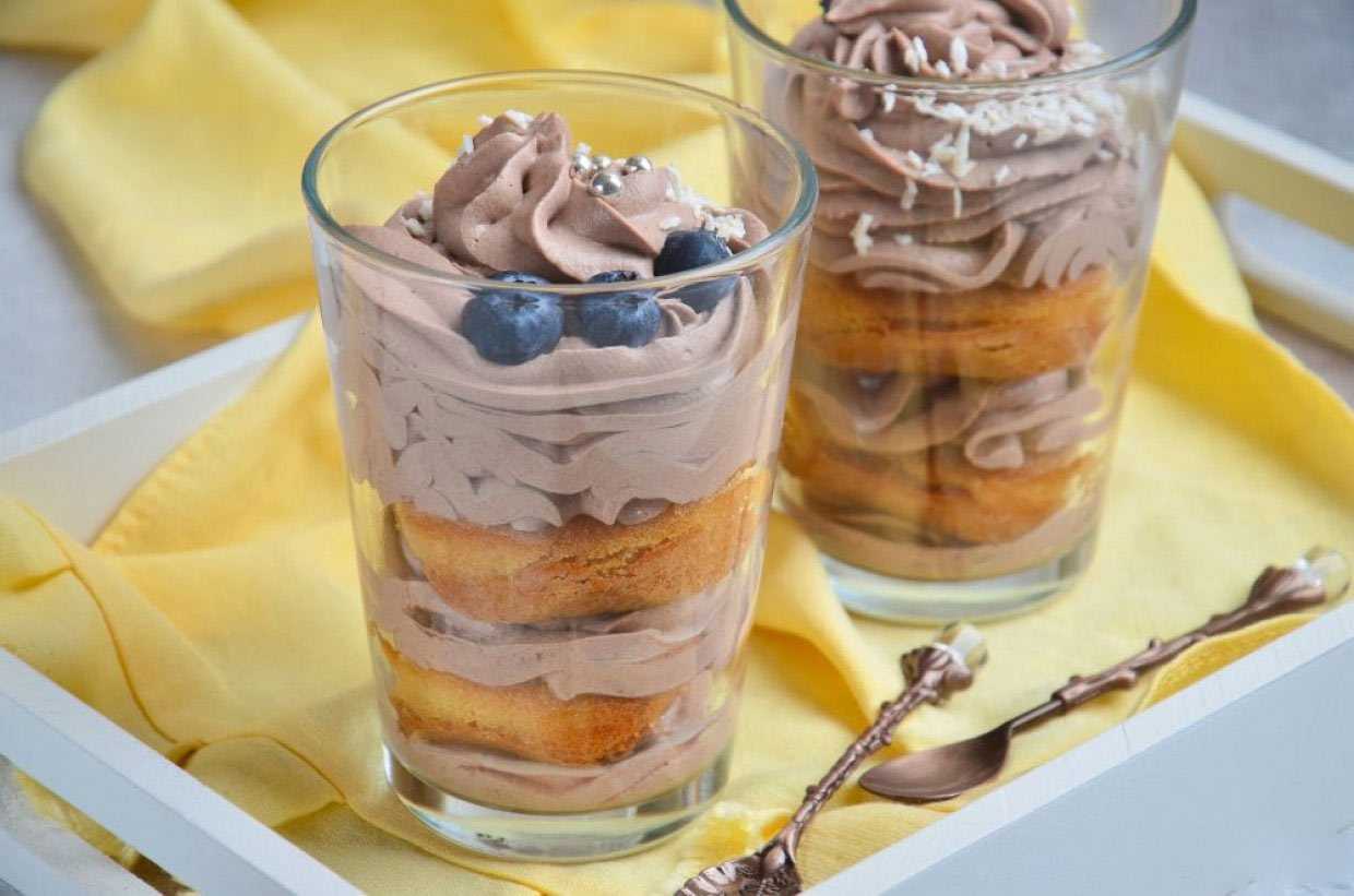 Уложите сладкую массу в емкость, схожую по форме с шишкой, или в рюмку, слегка примните и выложите на плоское блюдо для подачи. Подобным образом сформируйте другие пирожные и присыпьте их просеянной сахарной пудрой.