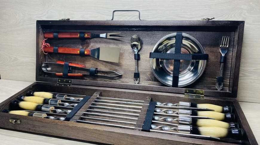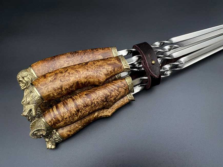 Может быть выполнен дизайн на самом лезвии или ручке. Если это принципиально важный критерий, то можно выбрать выбрать шампуры с различным дизайном.
