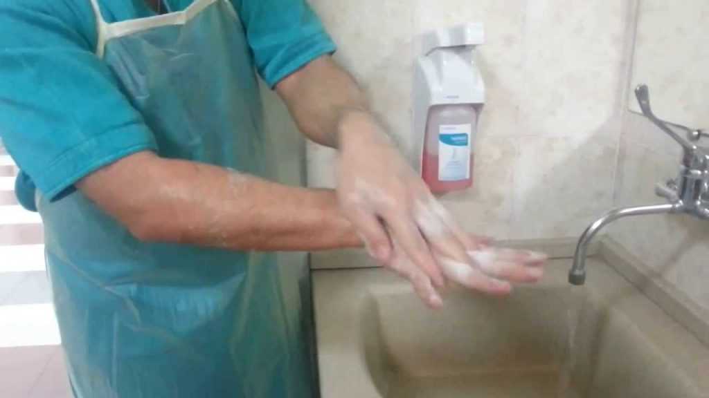 Хирургическое очищение рук отличается от гигиенического тем, что механическое мытье продолжается не меньше двух минут. Медики обязательно обрабатывают предплечья.