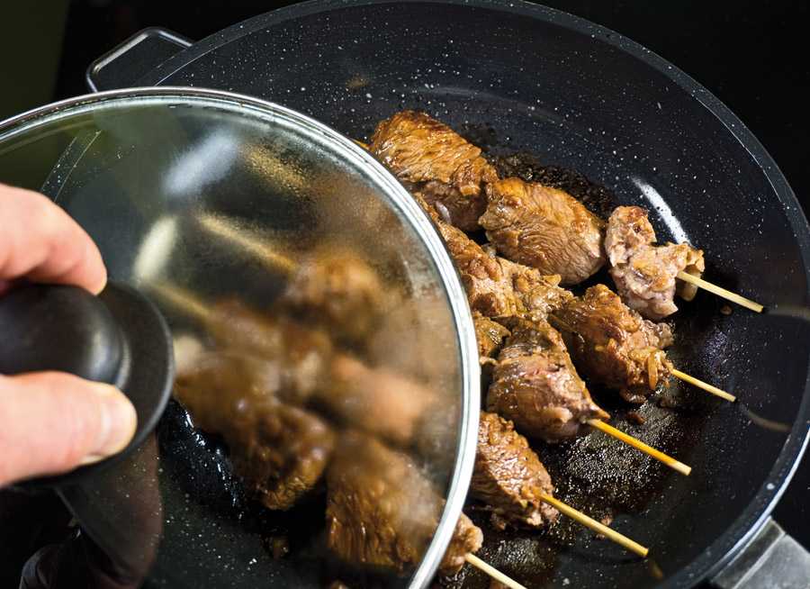 Шашлык на сковороде с дымком. Шашлык на сковороде