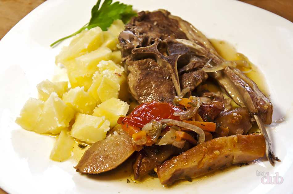 Накрыть крышкой и томить при слабом нагреве пару часов, в этом весь секрет блюда – мясо медленно тушится в соке овощей, обмениваясь вкусами и ароматами.