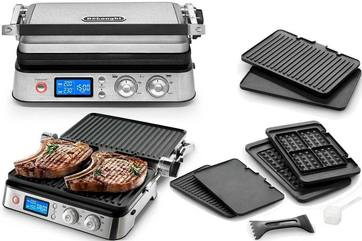 Так, существуют приборы со сменными панелями, благодаря чему можно не только пожарить мясо или рыбу, но и приготовить картофель фри, панкейки, вафли. Некоторые модели электрогрилей имеют функцию разморозки блюд.